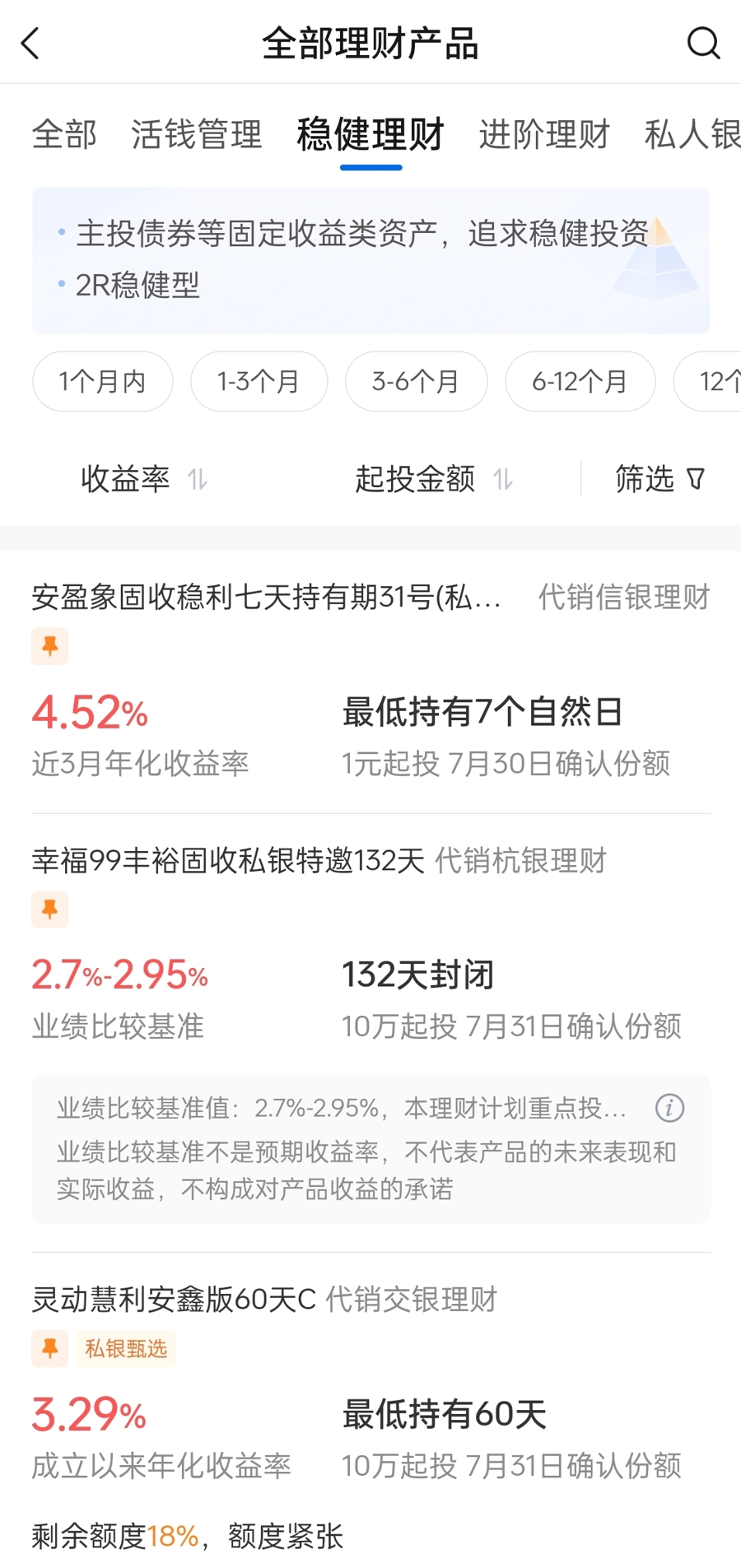 二是考察历史业绩和最大回撤。虽然过往业绩不代表未来表现,但可以在一定程度上反映产品的管理能力,要尽量选择波动较小的产品。比如你可以看一看,这款产品在过去三个月或者过去六个月的表现如何,或者在刚才提到的2022年末债市波动时,这款产品的回撤幅度如何。