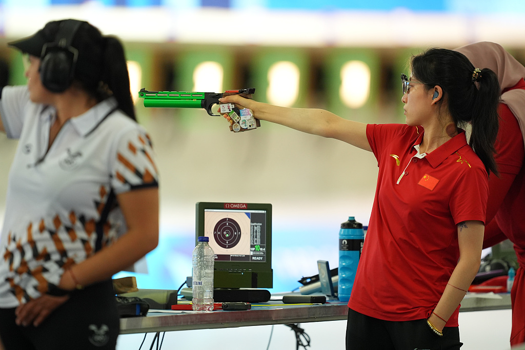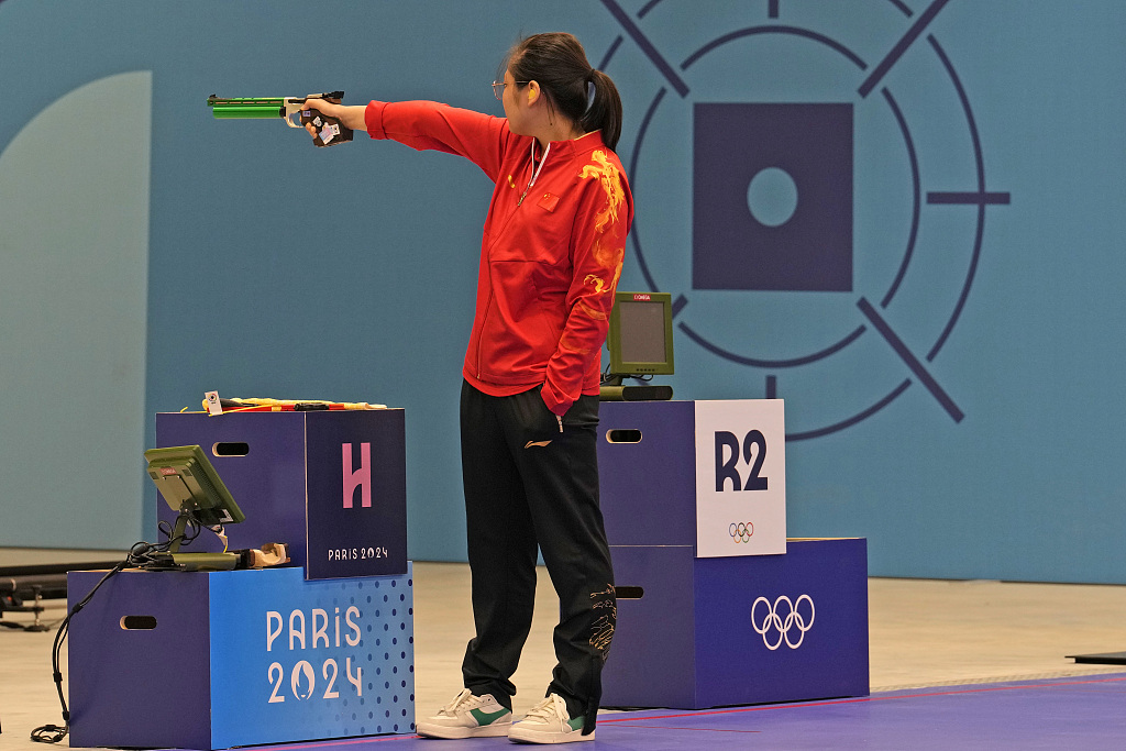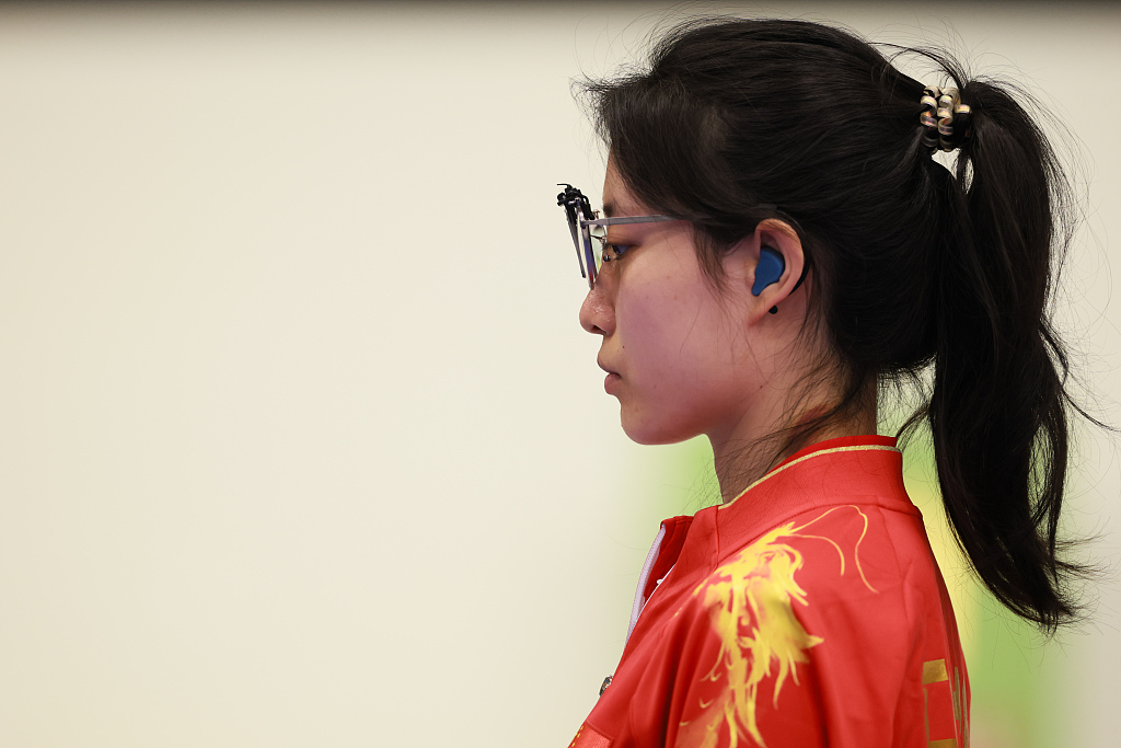 当地时间2024年7月27日,法国,姜冉馨参加巴黎奥运会射击女子10米气手枪资格赛。