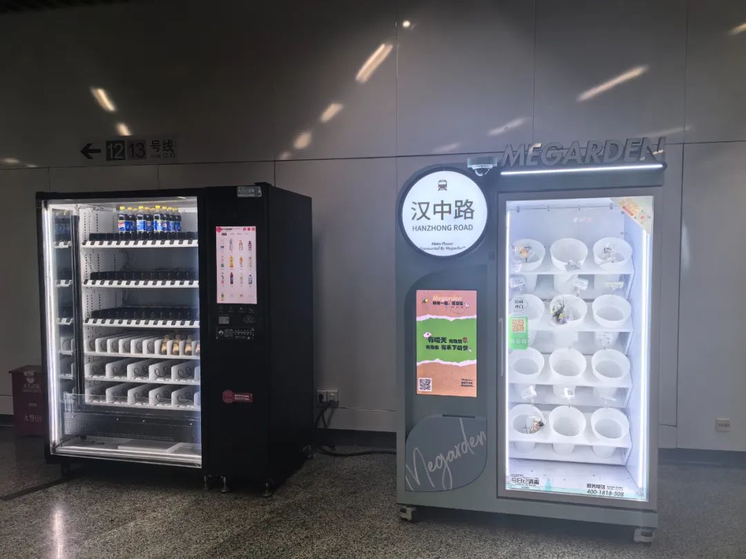 在汉中路站换乘通道,Megarden 鲜花自动售卖机里还剩下4束“干花”,里面的鲜花都枯萎了,大部分花桶处于空置状态,一枝紫色的“小仙女”摇摇欲坠。旁边的饮料售货机情况一样,也空了四五排,只有百事可乐和某品牌柠檬茶在“坚守”。记者多次致电Megarden鲜花自动售卖机服务热线,至今无人接听。