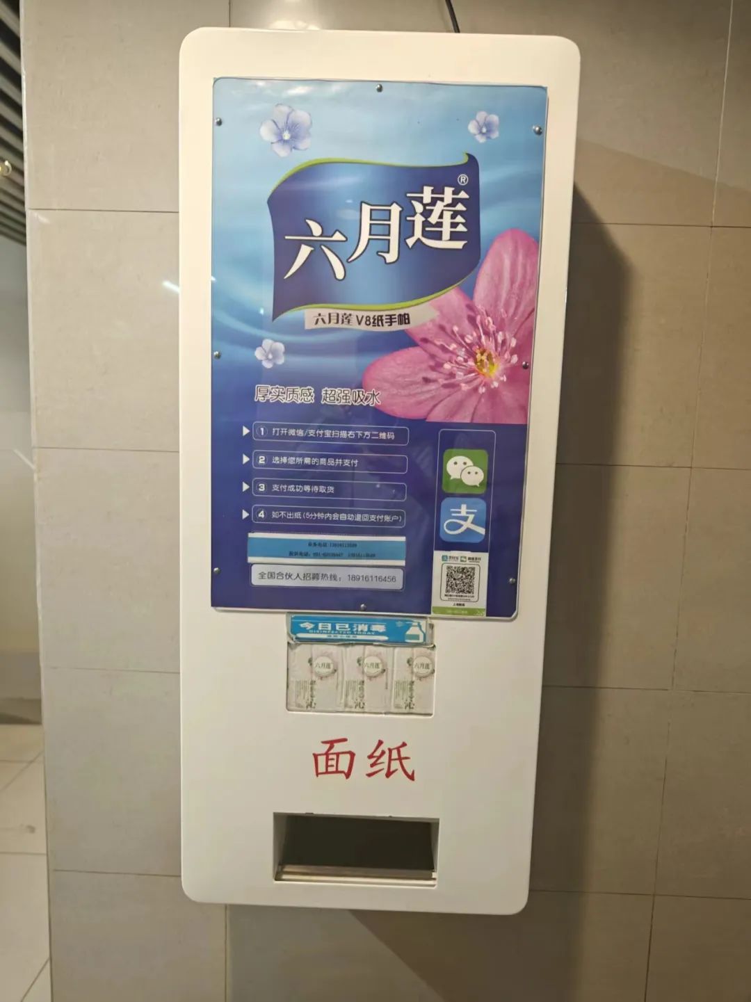 地铁站公厕门口的面纸机