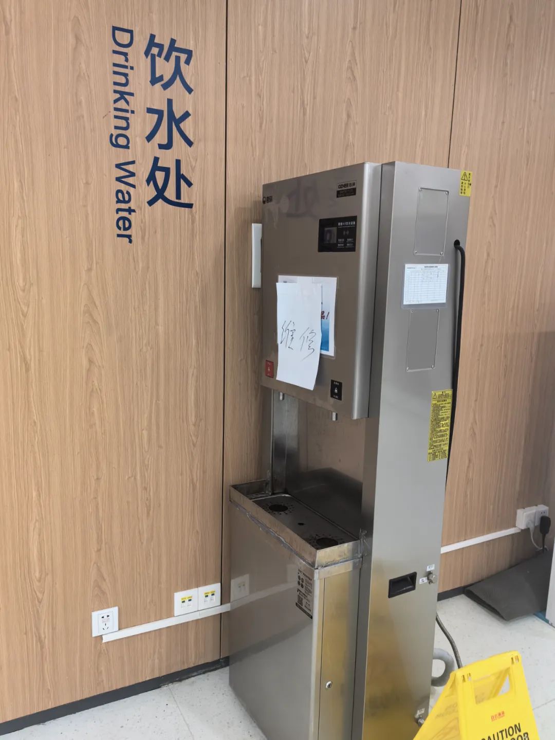 上海市第十人民医院的急诊1楼饮水处显示维修中