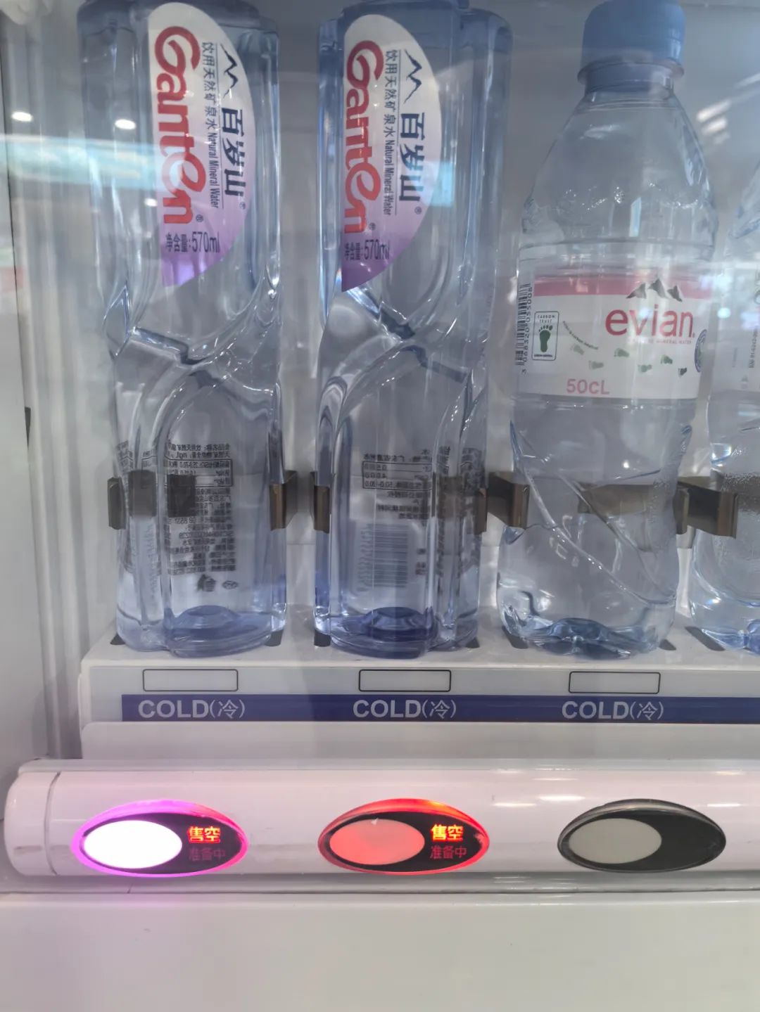 自动售货机里的百岁山显示售空