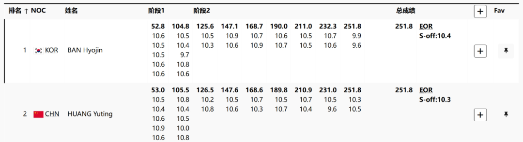 24枪过后,中国选手黄雨婷和韩国选手总成绩同为251.8环,附加决胜中,黄雨婷0.1环惜败,为中国代表团再添一枚银牌,个人本届奥运会收获1金1银!