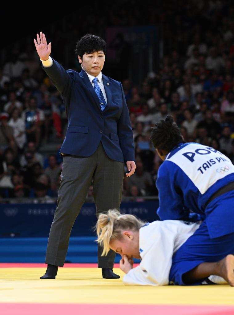 在巴黎奥运会柔道赛场上,世界顶尖选手奋力角逐,全球选拔而来的裁判员们同样在经历“大考”。