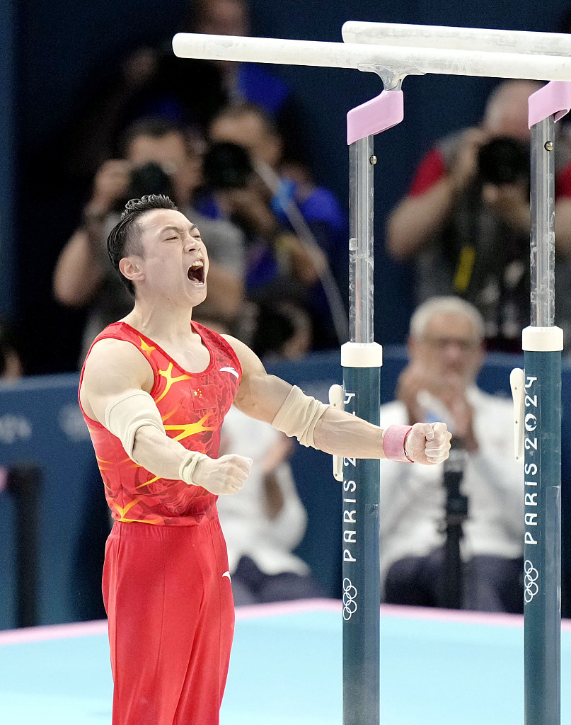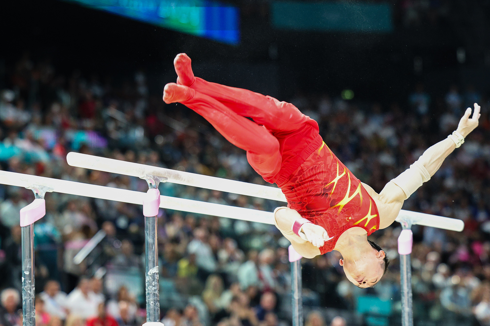 巴黎奥运会体操男子双杠决赛中,邹敬园夺得金牌