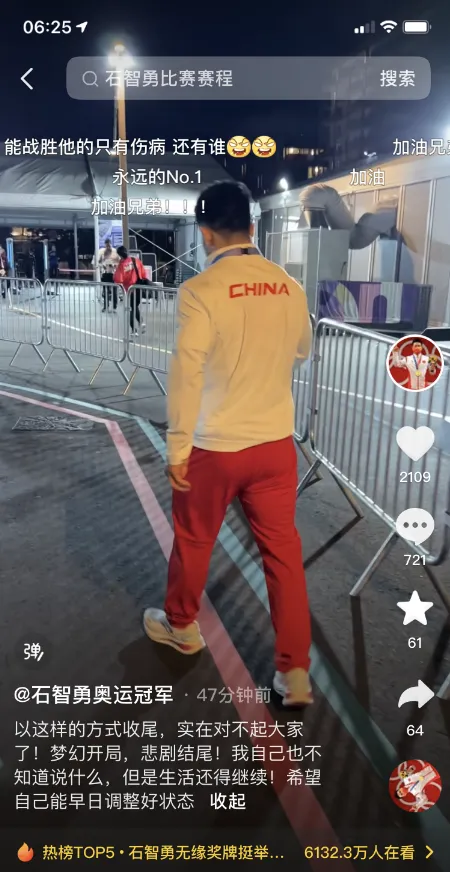 赛后,石智勇还在社交平台上发布一则短视频,配文:“以这样的方式收尾,实在对不起大家了!梦幻开局,悲剧结尾!我自己也不知道说什么,但是生活还得继续!希望自己能早日调整好状态。”