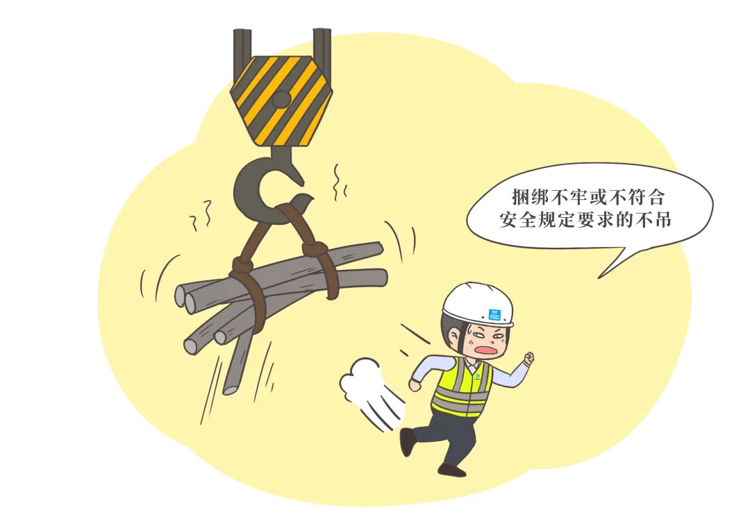13►起吊重物时应绑扎平稳、牢固,不得在重物上悬挂或堆放零星物件。零星材料和物件必须用吊笼或钢丝绳绑扎牢固后方可起吊。严禁使用塔吊进行斜拉、斜吊和起吊地下埋设或凝结在地面上的重物。