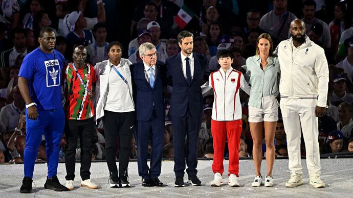 新华社照片,巴黎,2024年8月11日8月11日,演员在闭幕式现场表演。当日,第33届夏季奥林匹克运动会闭幕式在巴黎法兰西体育场举行。新华社记者李尕摄