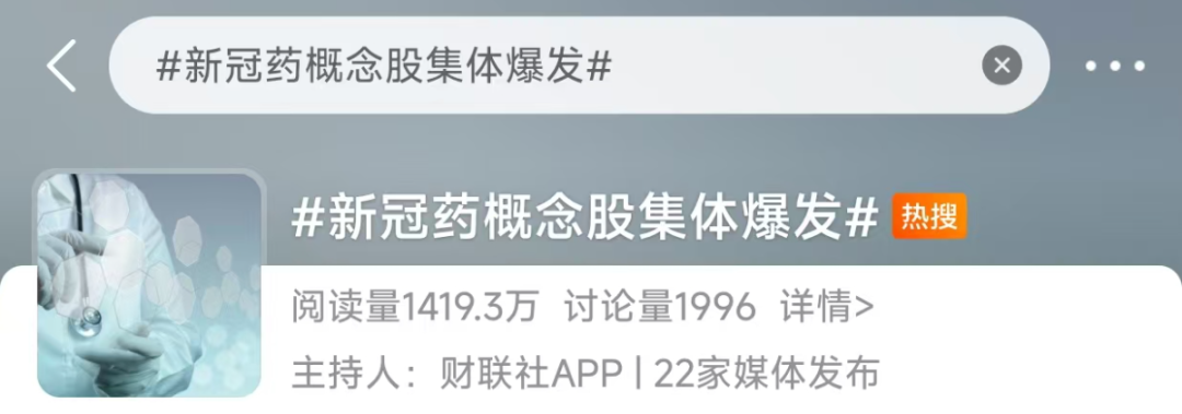 此外,昨天(8月12日)新冠药概念股爆发相关消息也冲上了热搜。