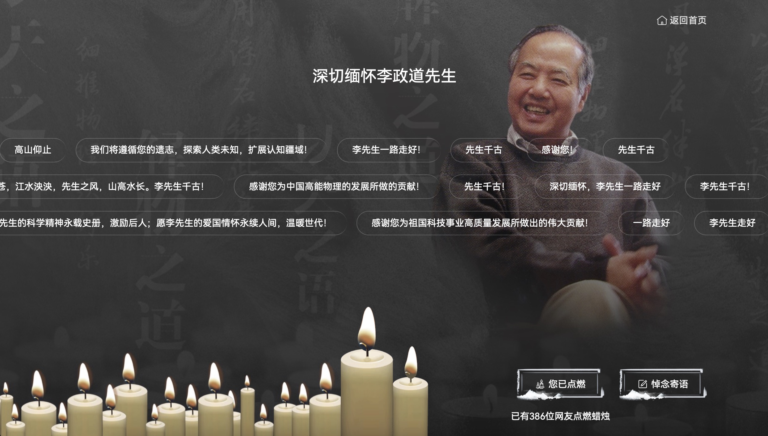 缅怀李政道先生专题网站开放云悼念,可线上点蜡烛、写留言