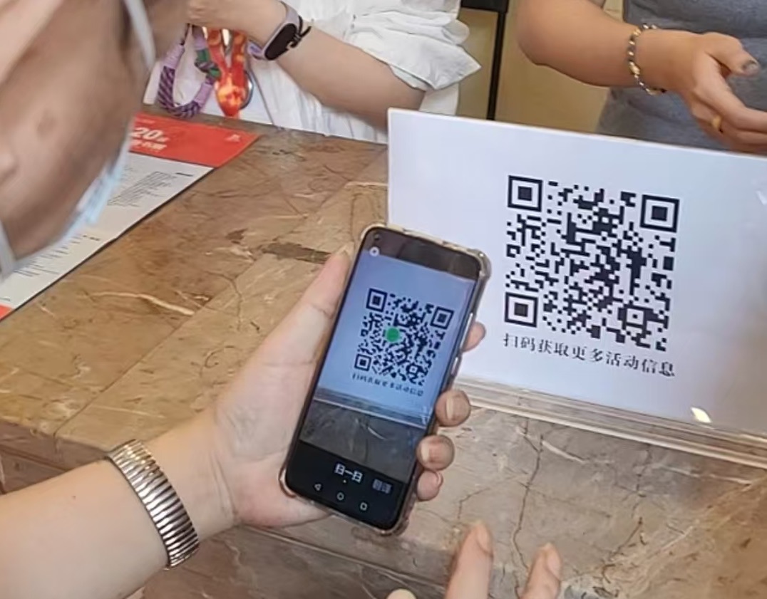“纸质导览图还有吗?给我一份。”“抱歉发完了,您可以拍照片或者扫码看电子地图。”