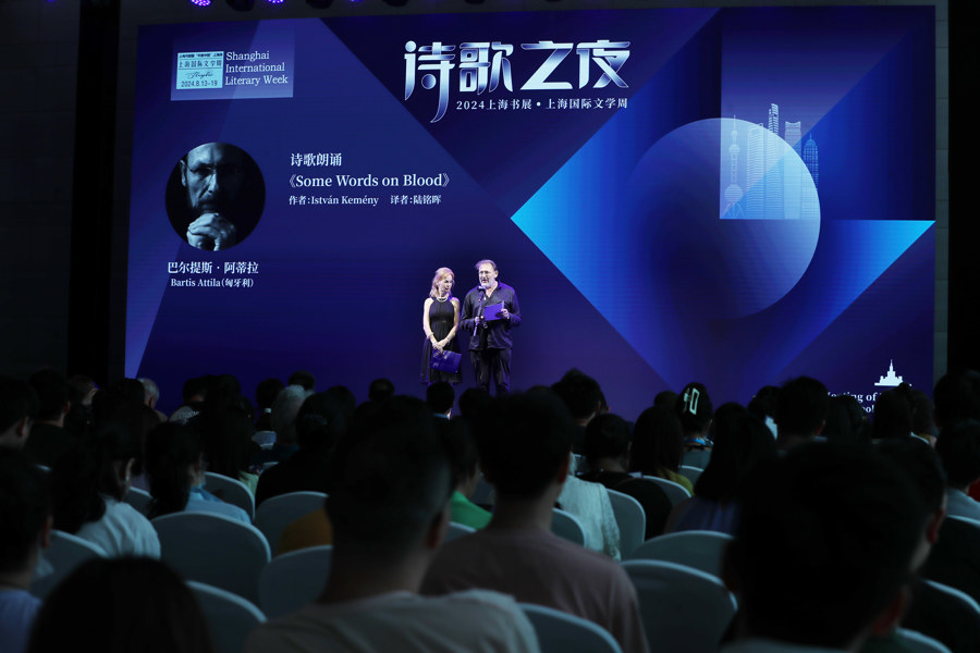 此外,美国诗人弗罗斯特·甘德、西班牙作家伊莲内·巴列霍、安德烈斯·巴尔瓦,匈牙利作家巴尔提斯·阿蒂拉,美籍华裔科学家梁贵柏,中国作家、茅盾文学奖得主王旭烽,翻译家、学者袁筱一以及顾文艳、路魆、刘铮、赵志明等嘉宾相继上台,朗读自选或自己创作的诗歌。