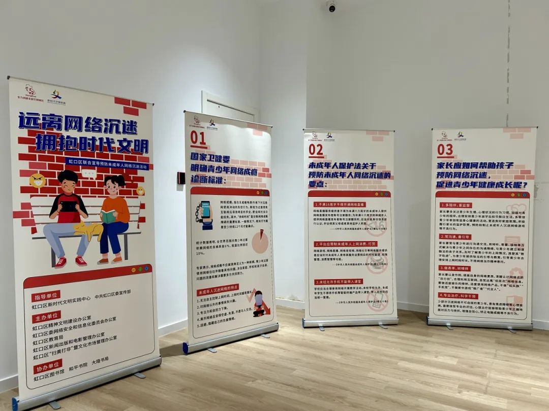 8月14-20日,上海国际文学周“国际儿童文学周”期间,由区文明办、区网信办、区教育局、区新闻出版和电影管理办公室、区“扫黄打非”暨文化市场管理办公室主办,区图书馆、和平书院、大隐书局协办的“远离网络沉迷、拥抱时代文明”联合宣导预防未成年人网络沉迷活动在和平书院·少儿馆举办,旨在增强社会各界对青少年网络成瘾的认识,形成全社会共同关注、共同参与的良好氛围,守护青少年健康成长。