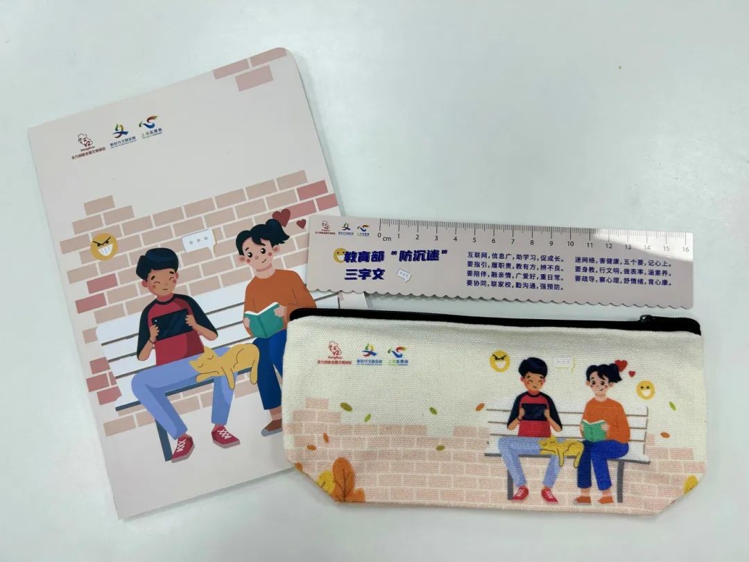 据了解,8月14-20日在和平书院·少儿馆举办的各类手工活动、图书分享会上,参与的家长和孩子们均有机会获得预防网络沉迷主题的文具礼品,包括印有“‘防沉迷’三字文”的尺子、绘有“防沉迷”主题插画的笔记本和笔袋。这些实用又富有教育意义的礼物,让孩子们在学习的同时,也能时刻提醒自己合理控制上网时间,拒绝网络沉迷,健康快乐成长。