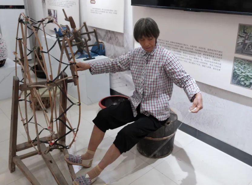 纺线时,自家种植的棉花成了“压箱底”的宝贝,把弹好的棉花搓成一卷卷的长条,一手拿着棉花条,一手摇着纺车抽线,“吱呀”的机杼声中诉说生活的千姿百态。