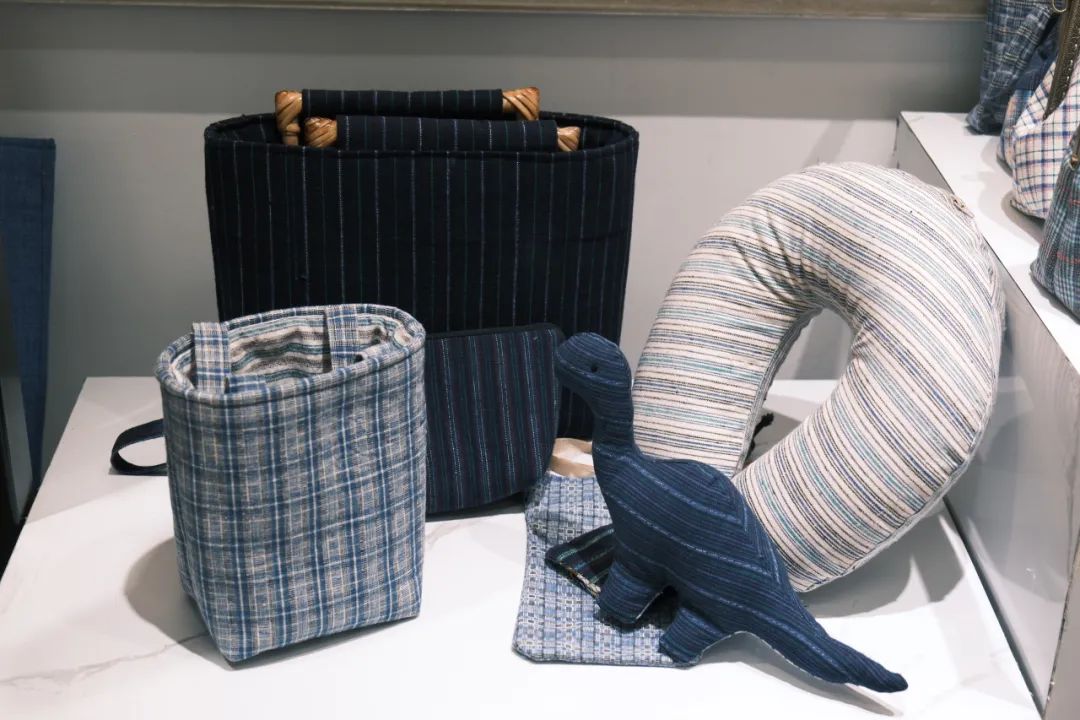 现在,练塘土布在东泖村“土布染织技艺青浦区练塘镇东泖村传习所”的负责人沈佳慧的推动下,更多地进入到现代生活的应用场景,时尚包袋、可爱抱枕、文雅书签,多种多样的衍生品受到年轻人的喜爱。
