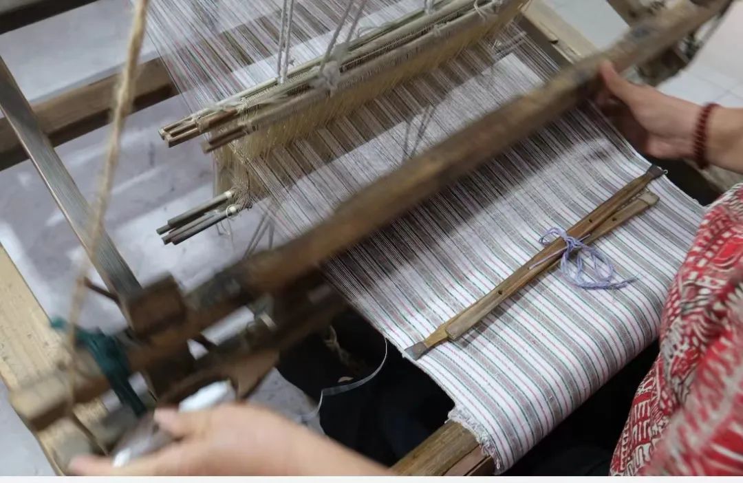 经布时,在穿经棒上穿各种颜色的经线,每一根经线和纬线的交织,都代表着一种坚持和传承。经线的排列组合就是布匹花纹的基础,这项工作需要极高的耐心和熟练的技巧。“一经一纬”间仿佛有天地宽,又自有繁花生。