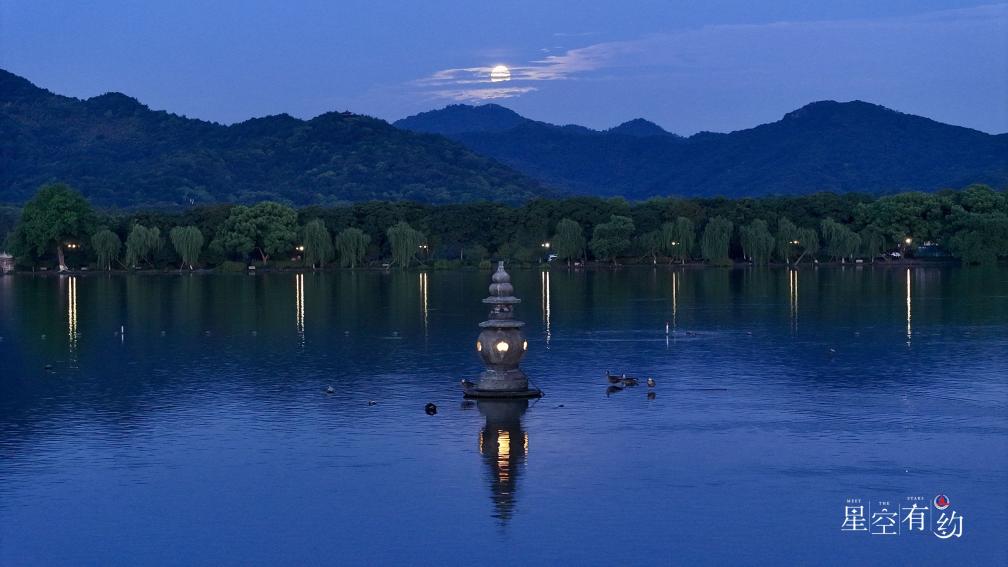 这是8月19日晚在浙江杭州西湖拍摄的“超级月亮”。(星空摄影师范侃侃 摄)