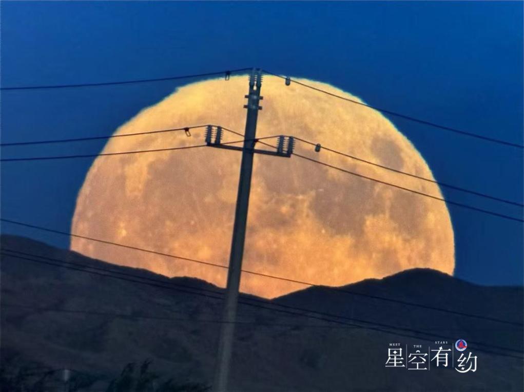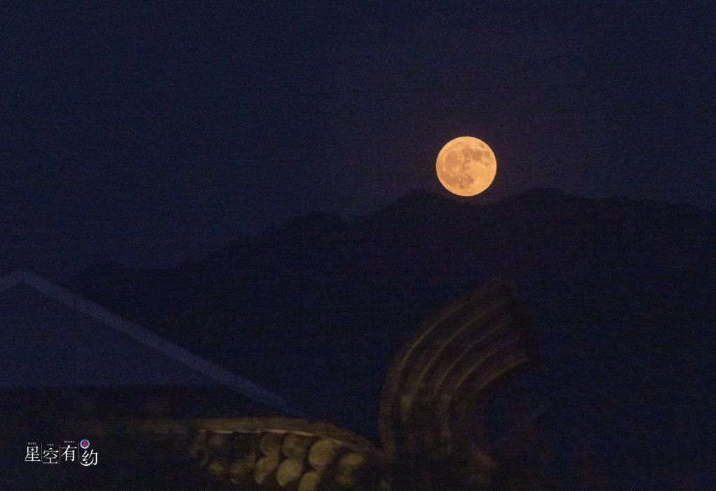 这是8月19日晚在内蒙古阿拉善右旗巴丹吉林镇拍摄的“超级月亮”。(星空摄影师谢宗亮 摄)