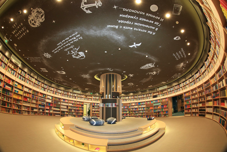 值得一提的是,在书店顶部可是写满了各个国家有代表性的诗句和著名作者,呈现了书店跨文化的特色。平日里,上外书店还有不少亲子活动等大家来参加,可以多多留意哦。
