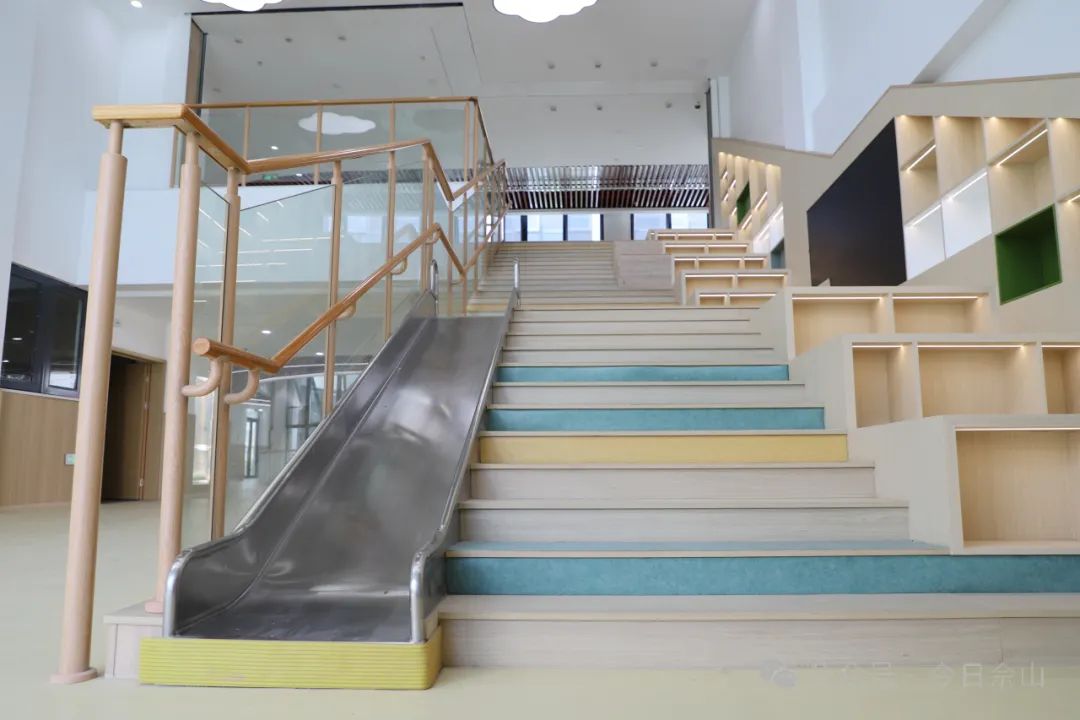 新园设施齐全、功能完善。教室里宽敞明亮,原木色的桌椅、柜子以及白色的墙面,给人温馨而舒适的感觉,每间教室还设有独立的活动室、午睡室、盥洗室、储物间。此外,园内还配备了多功能厅、美工室、科探室、建构室、图书室等专用教室,让孩子们在活动中实现自主探究、方法学习、快乐成长。