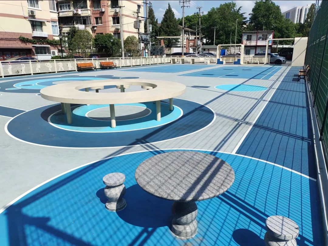 健身广场功能齐全,男女老少其乐融融,让这个原本封闭的空间重新焕发了活力。“以前网球场常年空置,也没有别的设施,现在大家都爱进去坐坐或者锻炼,街坊邻居聊天也有地方了。”居民们表示,改造不止激活了社区空间,也激活了邻里的关系。