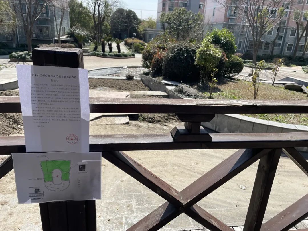 方案制定后,社区将公示公告张贴在项目地点附近,通过前期走访,尤其针对周边居民的意见建议收集,了解到居民对水池周边的绿化改善和路面修整的意见较多。
