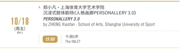 2023年10月28日,第22届中国上海国际艺术节上海戏剧学院“扶持青年艺术家计划”委约作品之一《面影3.0》在今潮8弄上演