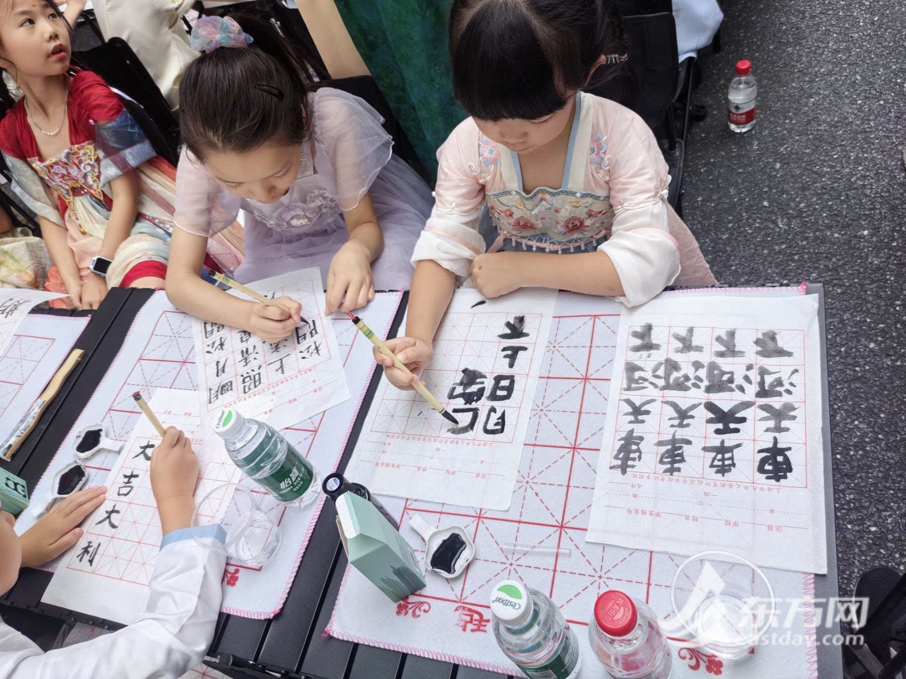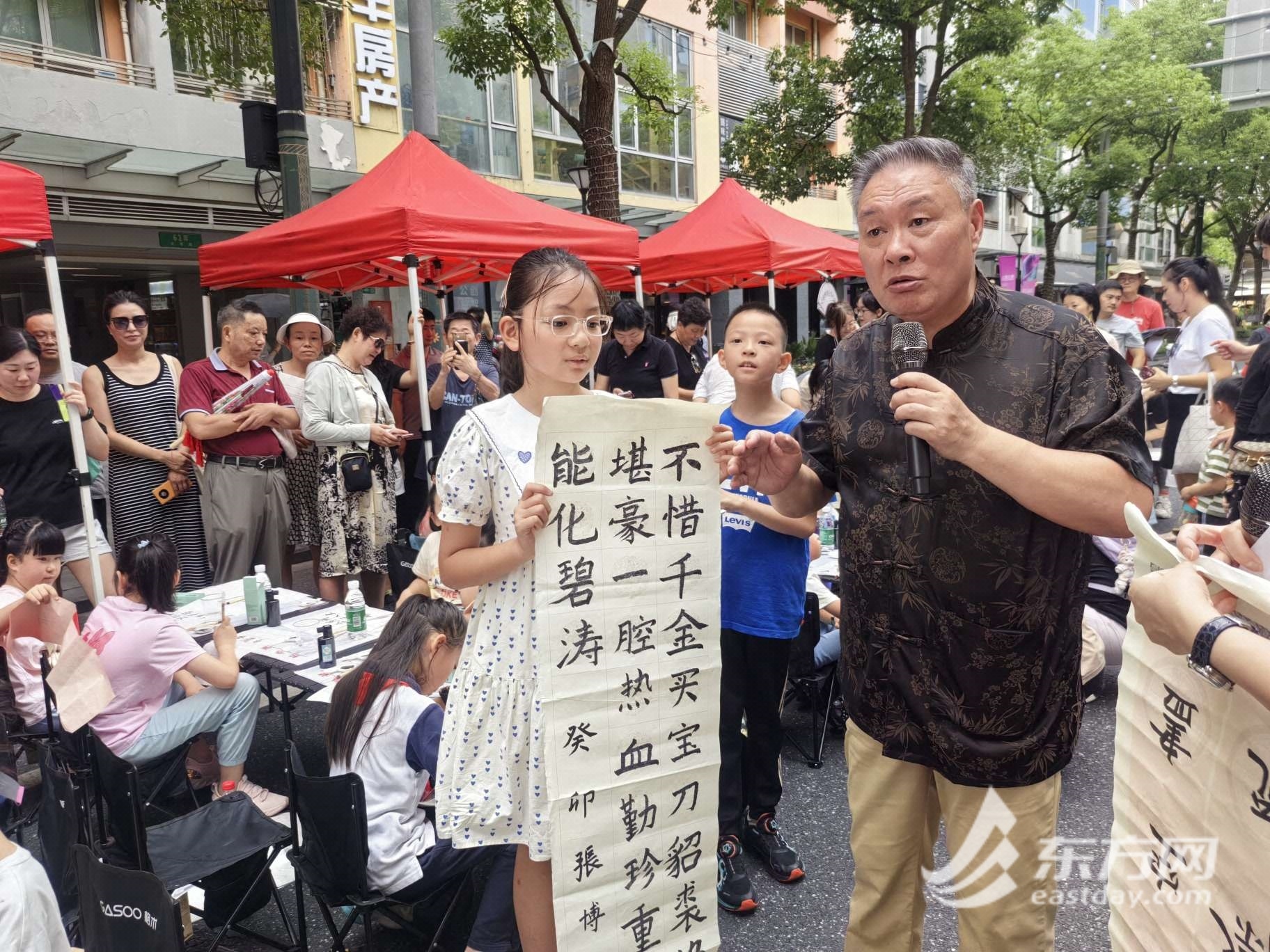 东方网记者熊芳雨8月31日报道:"开笔礼”是中国古有的一种启蒙学习仪式,通过庄重的仪式让即将读书的小朋友懂得感恩立志、尊师重道、明理尚学。在9月中小学开学前夕,“笔下生墨香”中小学开笔节在杨浦区大学路限时步行街举行。现场,小朋友们学习开笔礼,并挥墨写下对新学期的期待。
