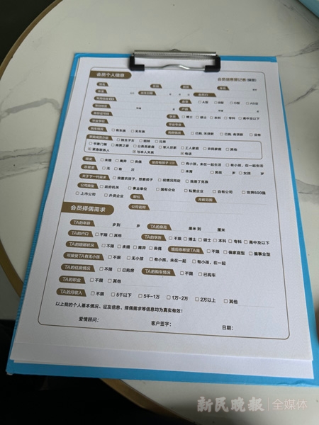 记者被带进一间仅酒店卫生间大小、灯光昏暗的房间内一对一交流,并填写了一张长长的资料卡。当记者问起那位“高颜值、性格乖巧、条件不错”的女生的详细信息时,这名“红娘”却语焉不详,称有更好的资源介绍给记者。