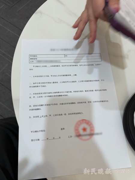 然而,当记者要求看一眼合同时,“红娘”却说合同属于“商业机密”,没有付费是不能看的。在记者的坚持下,“红娘”将6800元档的合同拿到了记者面前。记者惊讶地发现,整个合同竟然只有300多字,且未写明服务的具体内容。当记者对合同拍照时,这名“红娘”连忙站起来抢夺手机,其间又有一名工作人员走进来坐在门口,不让记者离开。最后,记者假装删除了照片,表示不接受服务才得以脱身。