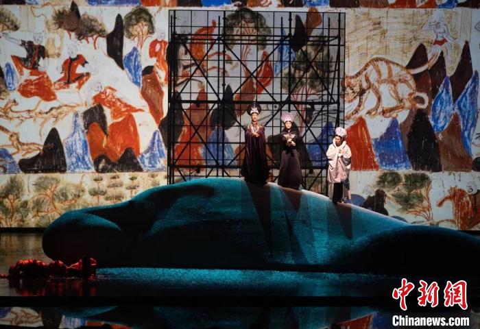 中新网上海8月31日电  音乐剧《飞天》30日晚首登上海舞台。该剧以敦煌壁画艺术为灵感,讲述跨越千年时空的经典,让敦煌艺术“活起来”。