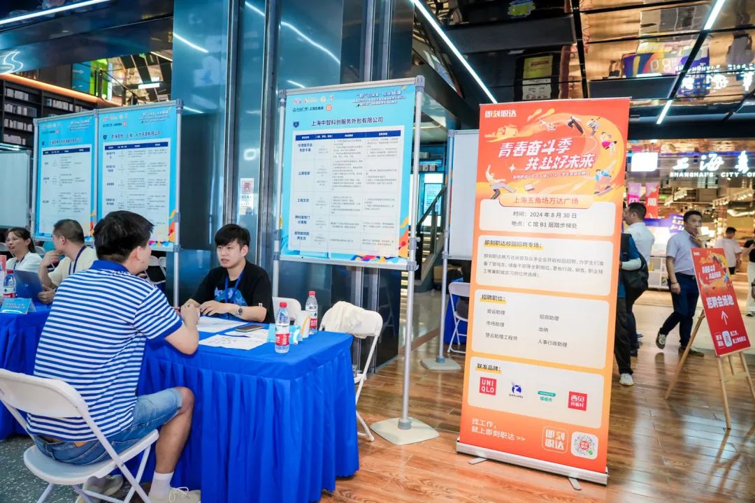 当晚,一场独具特色、别开生面的“夜市”招聘会在商圈举行。作为今年杨浦区商圈夜市专场招聘会的首场活动,本次招聘会由区人社局、区民政局、五角场街道联合五角场万达广场共同举办,吸引了40余家企业和社会组织火热“出摊”,提供涵盖信息技术、数字科技、金融服务等行业在内的工作岗位500余个。