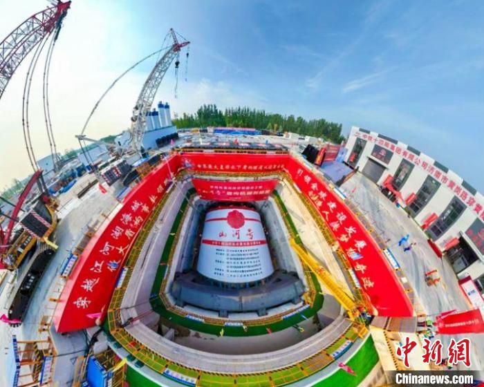 中新网济南9月1日电 (记者 沙见龙)9月1日,在济南市黄河北岸,直径17.5米的“山河号”盾构机投入作业,标志着济南市黄岗路穿黄隧道正式开始盾构掘进。