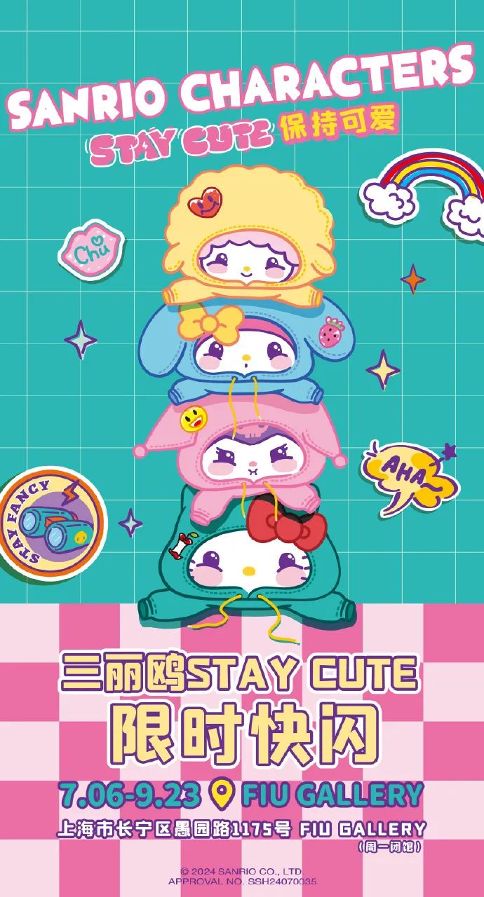 三丽鸥STAYCUTE限时快闪在满溢多巴胺色彩的甜蜜空间快乐上线,欢迎小可爱们来现场找Hello Kitty、酷洛米、美乐蒂还有必爱诺一起玩耍呀!活动现场不仅有超级出片的拍照打卡区和互动区,还有超多精美周边。