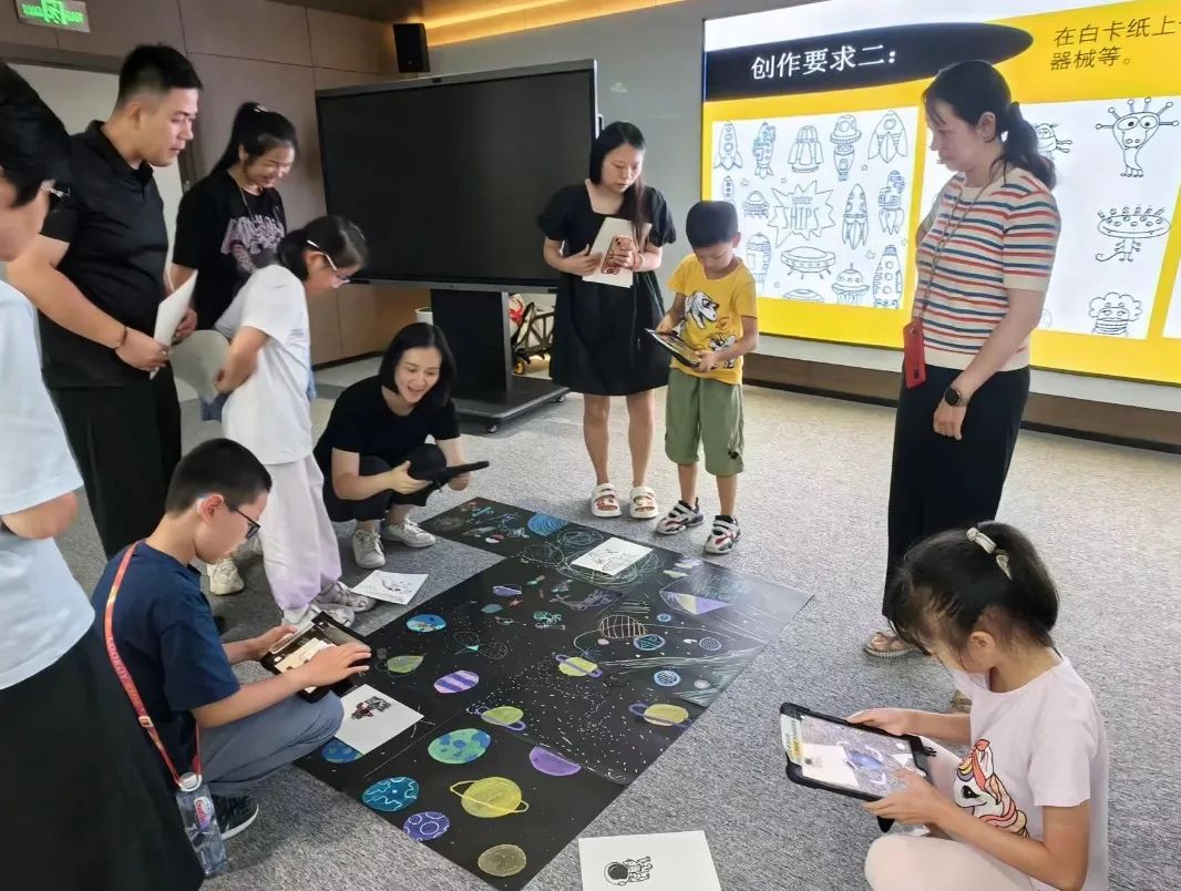 此外,该课程还被送到了区工人文化宫的爱心暑托班内,在学习的过程中,小朋友们通过发挥创意,使用色彩与线条自由创作自己心目中的宇宙场景,当大家看见自己创作的图像在屏幕上飘浮运动起来,欣喜的惊叹声此起彼伏,有小朋友兴奋地说道:“我以后想当一名宇航员,驾驶飞船飞向太空,去探索真正的宇宙。”