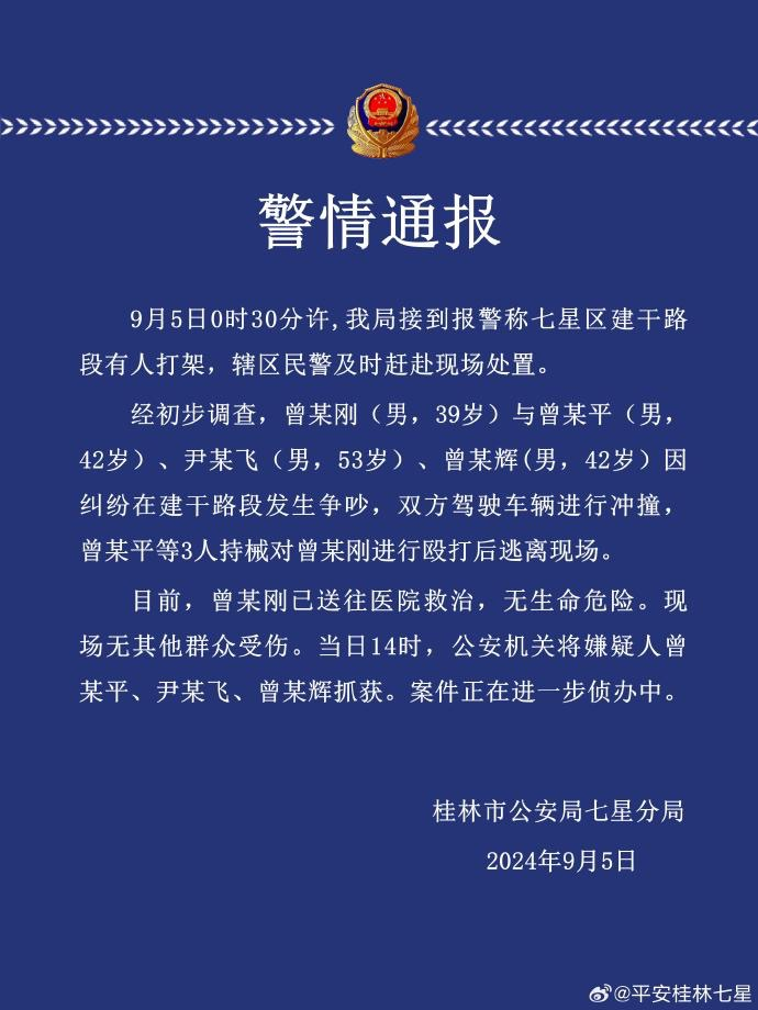 广西桂林警方通报“多人街头开车互撞持械打架”:嫌疑人被抓获