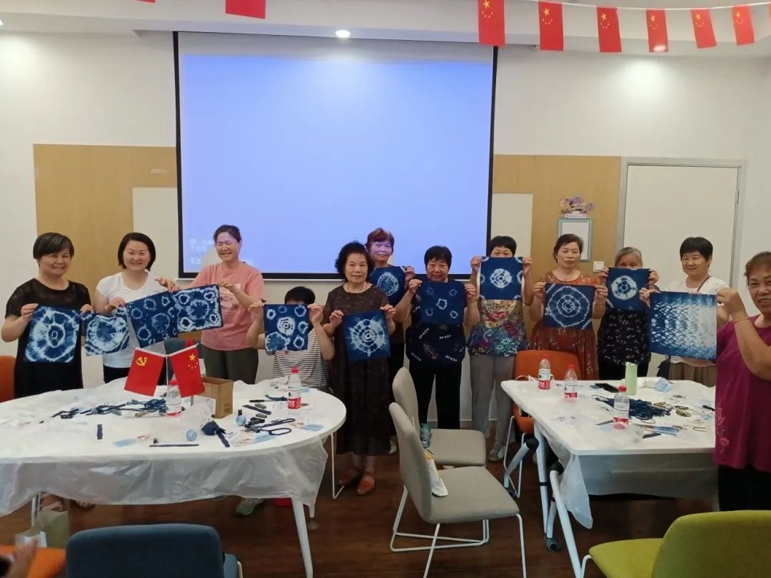 随后,在老师的专业指导之下,居民们亲自体验了扎染技艺。不论是重温旧日记忆的居民,还是首次接触扎染的新手,所有人都被这项技艺的独特魅力所吸引。大家围坐在一起,在天然染料的草木香气中交流心得,分享体会。