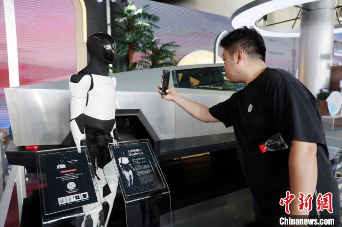 9月6日,市民用手机拍摄人形机器人。中新社记者 殷立勤 摄