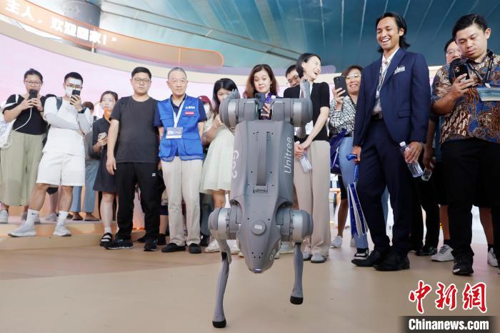 9月6日,民众观看四足机器人Go2(机器狗)表演。中新社记者 殷立勤 摄
