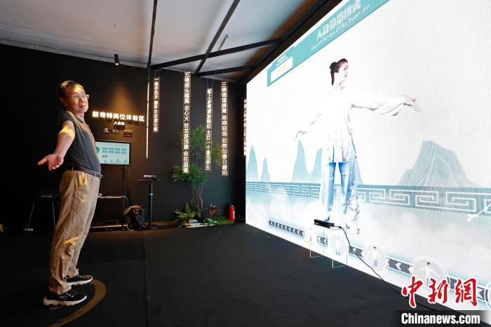 9月6日,市民跟着“数字人”练习八段锦。中新社记者 殷立勤 摄