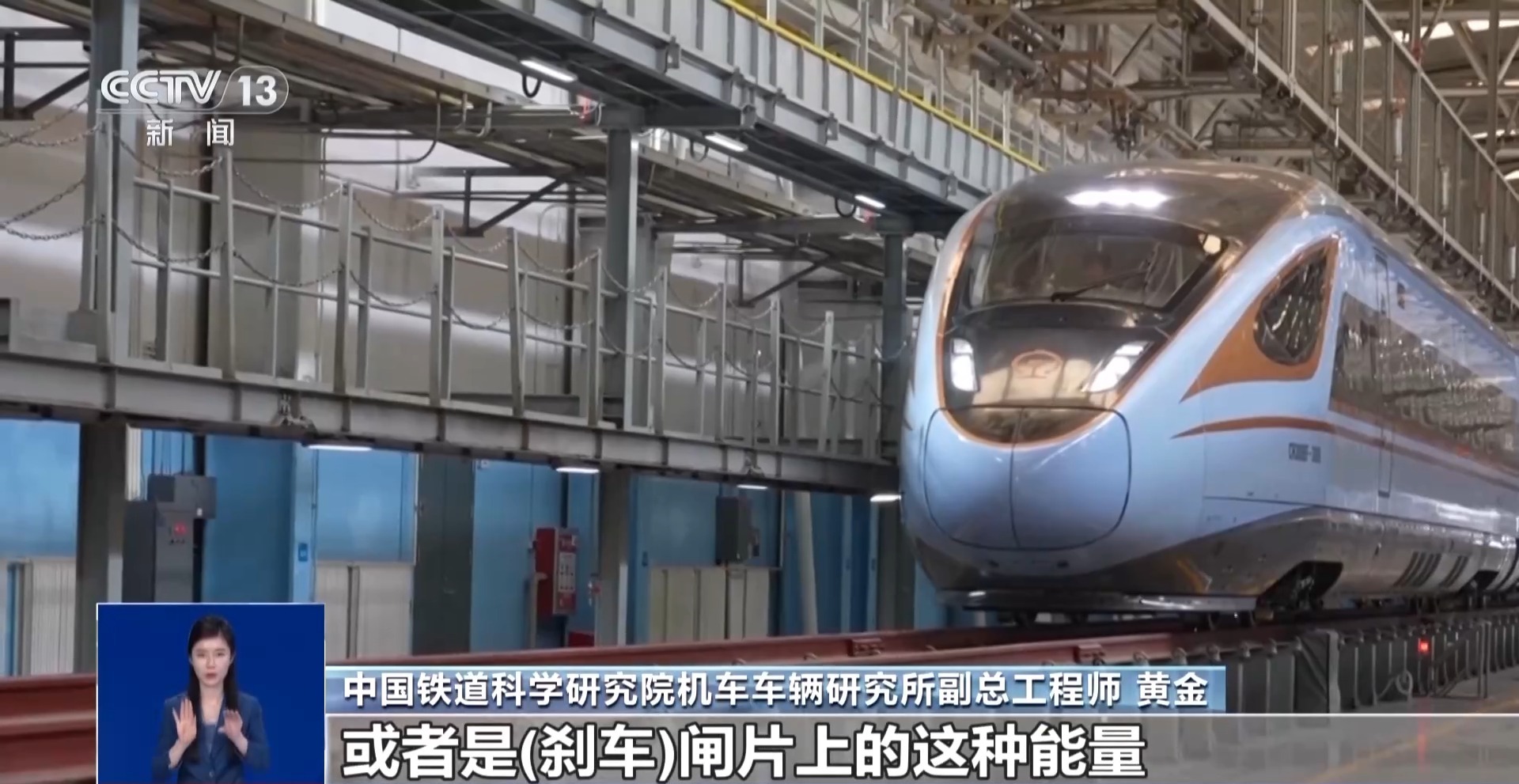 中国铁道科学研究院机车车辆研究所副总工程师黄金:我们能把制动高铁列车的这种能量,本来应该是消耗到制动盘或者是刹车闸片上的这种能量,通过变流装置,通过原来电能来的这条路径,再返回到取电的接触网上,这样就形成了电能的有效利用。
