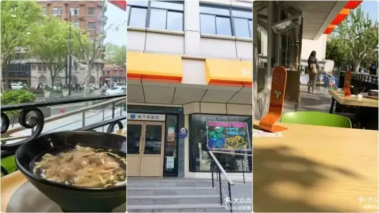 新亚大包(兴国路店),在网红打卡景点武康大楼的对面。当地居民说,店铺已经在这里开了三十多年。时至今日,店铺已经做了颇多适应时代的改进,比如大幅的玻璃幕墙可以让靠窗的顾客直接望到武康大楼的全貌,广告牌上的图案和字样都由复古又时尚的彩色灯管组成,室外座椅区可以沿街就餐,门店也改称“线下体验店”……