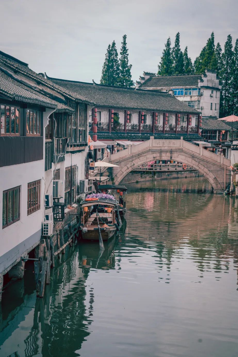 说到江南古镇朱家角,第一个跳入脑海的便是放生桥。拥有百年历史的放生桥是上海地区最长、最大、最高的五孔联拱大桥,称为”沪上第一桥”。