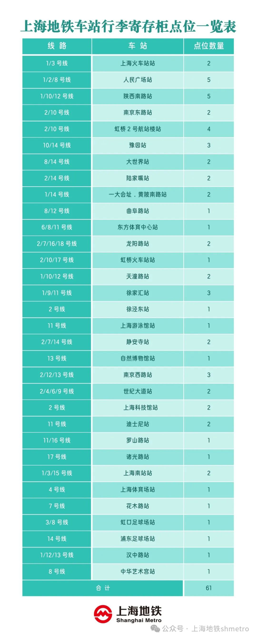 新增20站!上海地铁行李寄存柜将再扩容,来看站点分布图