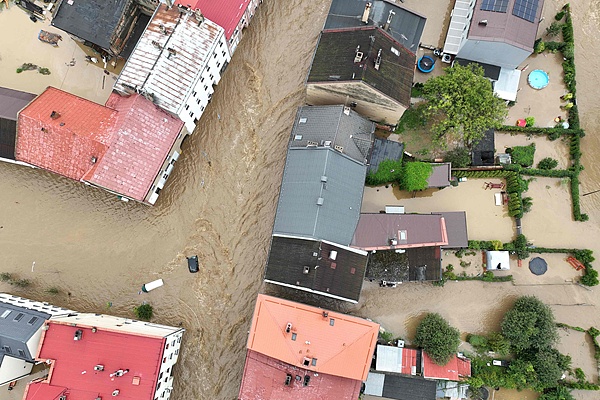 当地时间9月15日,波兰南部格武霍瓦济,城镇被洪水淹没 视觉中国