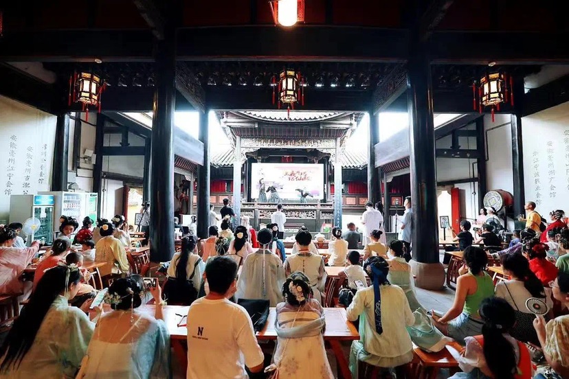 在重庆湖广会馆内,市民、游客们正在观看文艺演出。(重庆市渝中区融媒体中心供图)