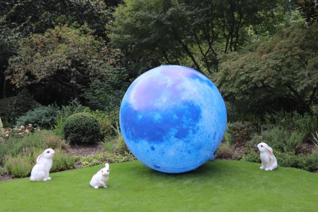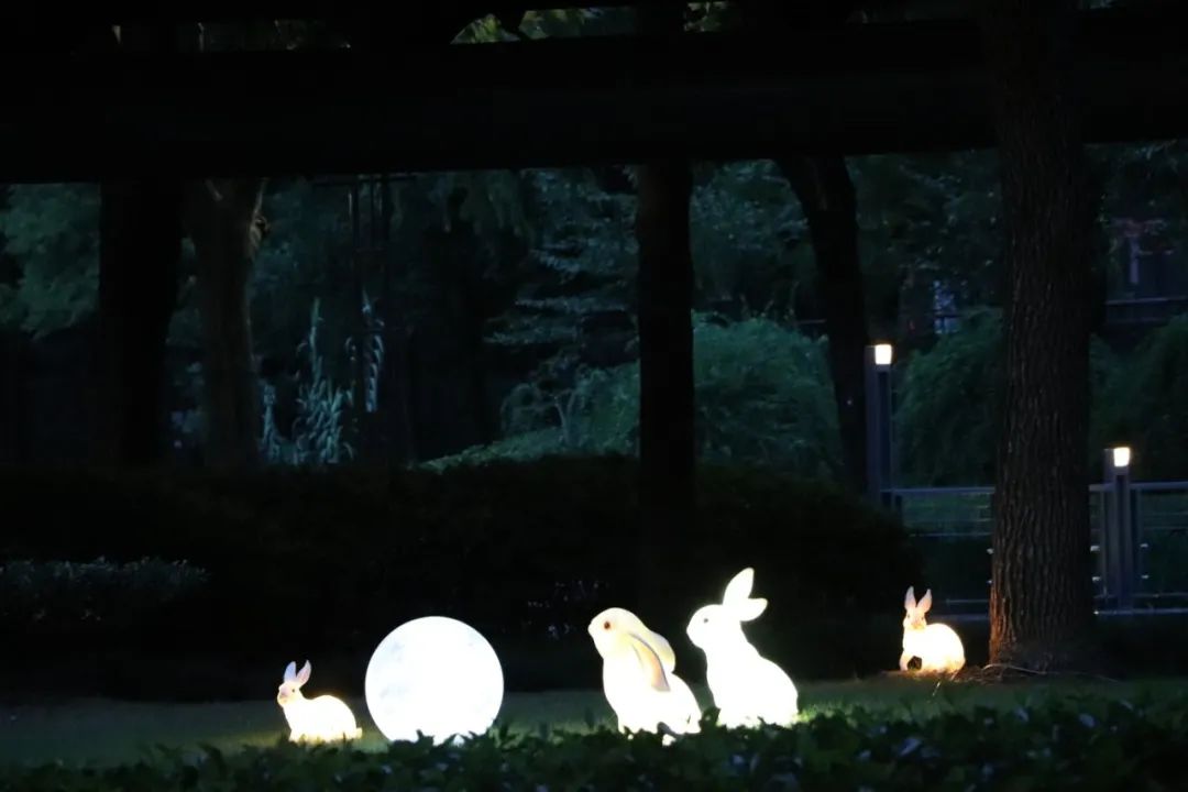 徐家汇公园在中秋佳节来临之际,以独特的月亮灯和兔子灯布置,营造出如梦如幻的节日氛围。