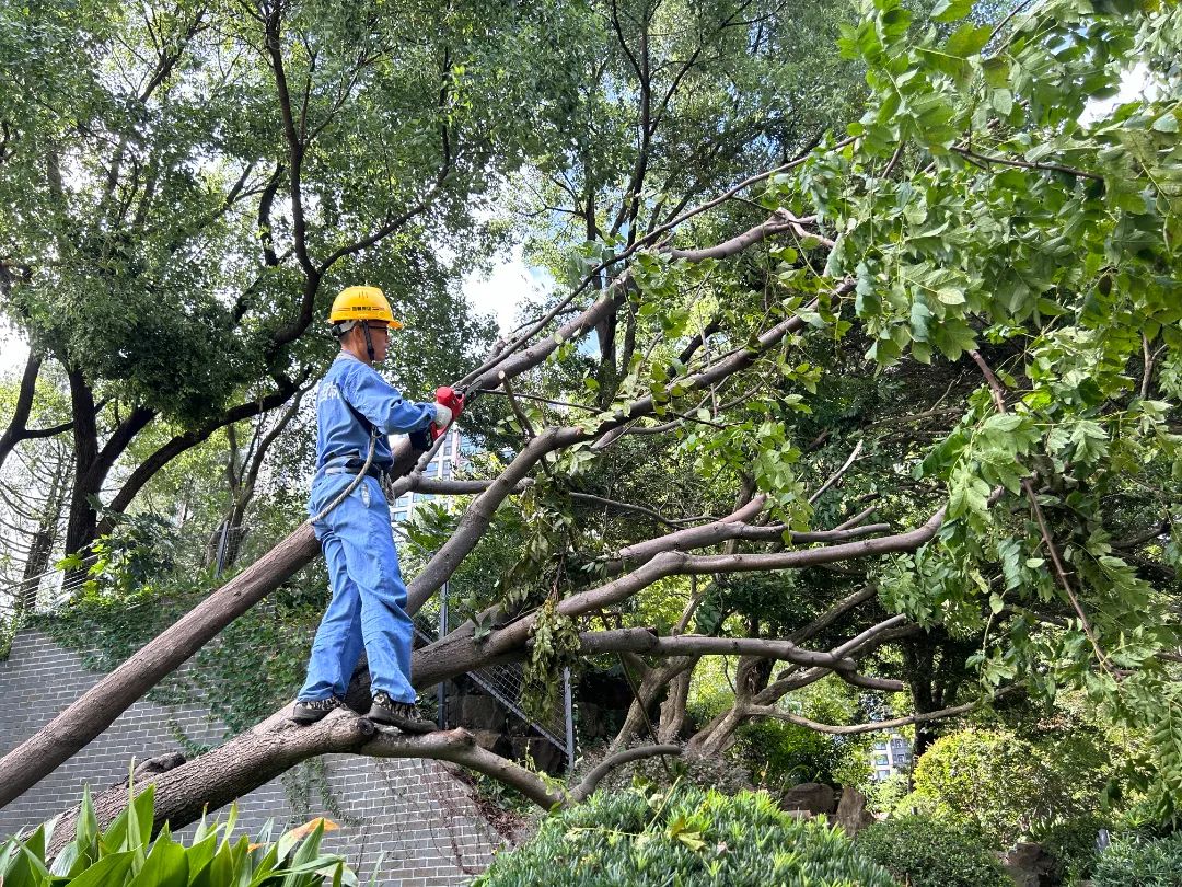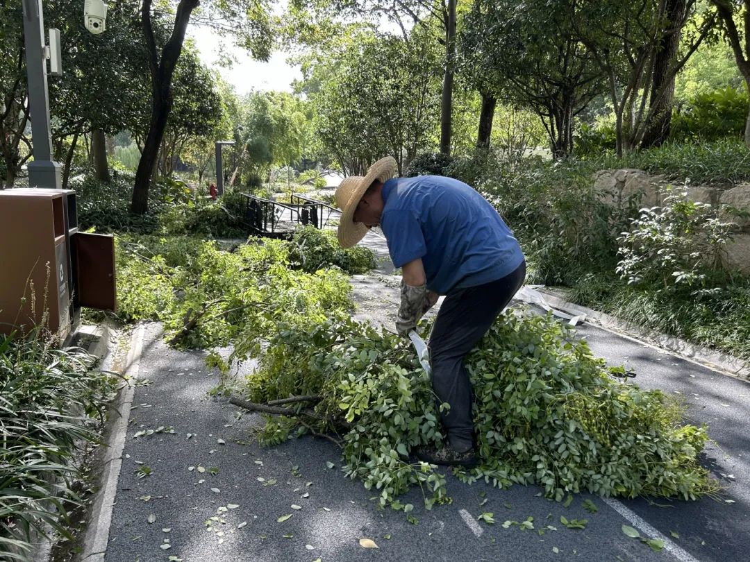 和平公园负责人透露,公园方面已制定了详尽的台风后修复方案。自台风预警发布以来,公园管理团队、养护团队及安保、保洁人员全员待命,紧密协作。预警解除后,更是第一时间对园内的电力设备和所有设施设备进行了全面排查和故障维修,并对公园内的积水进行处理,利用抽水设备迅速排除园内积水,同时,加班加点清理路面垃圾,确保公园环境尽快恢复整洁。“由于树木受损情况较为严重,我们从今天早上6点开始便继续加大清理力度,希望早日完成所有修复任务,确保公园尽快恢复生机,让市民能够再次享受这里的美景。”