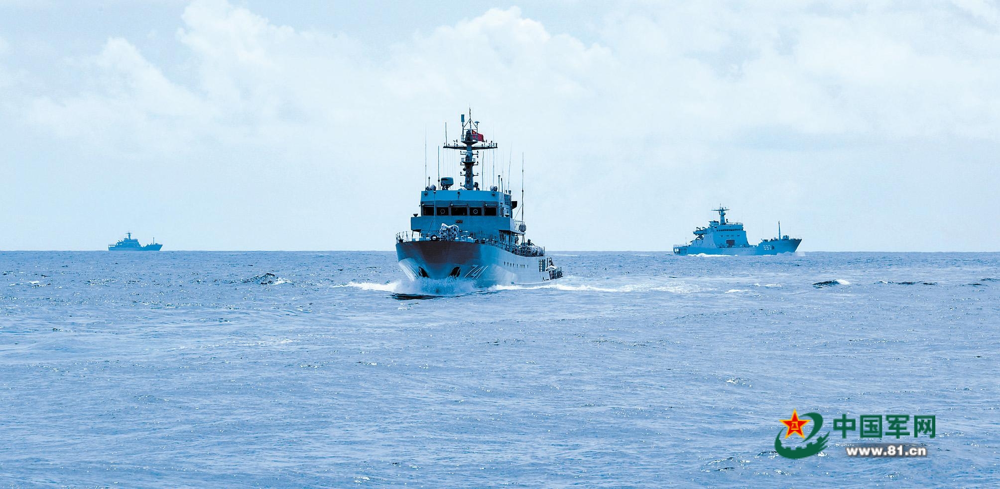 秋日,海军某扫雷舰大队数艘舰艇组成编队,出海开展反水雷训练。航行途中,“敌情”突至。舰艇编队迅速摆开扫雷阵形,向雷区挺进。